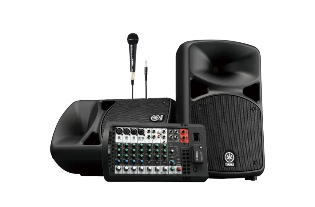 Sistema portátil con direccionamiento vertical y subwoofer.